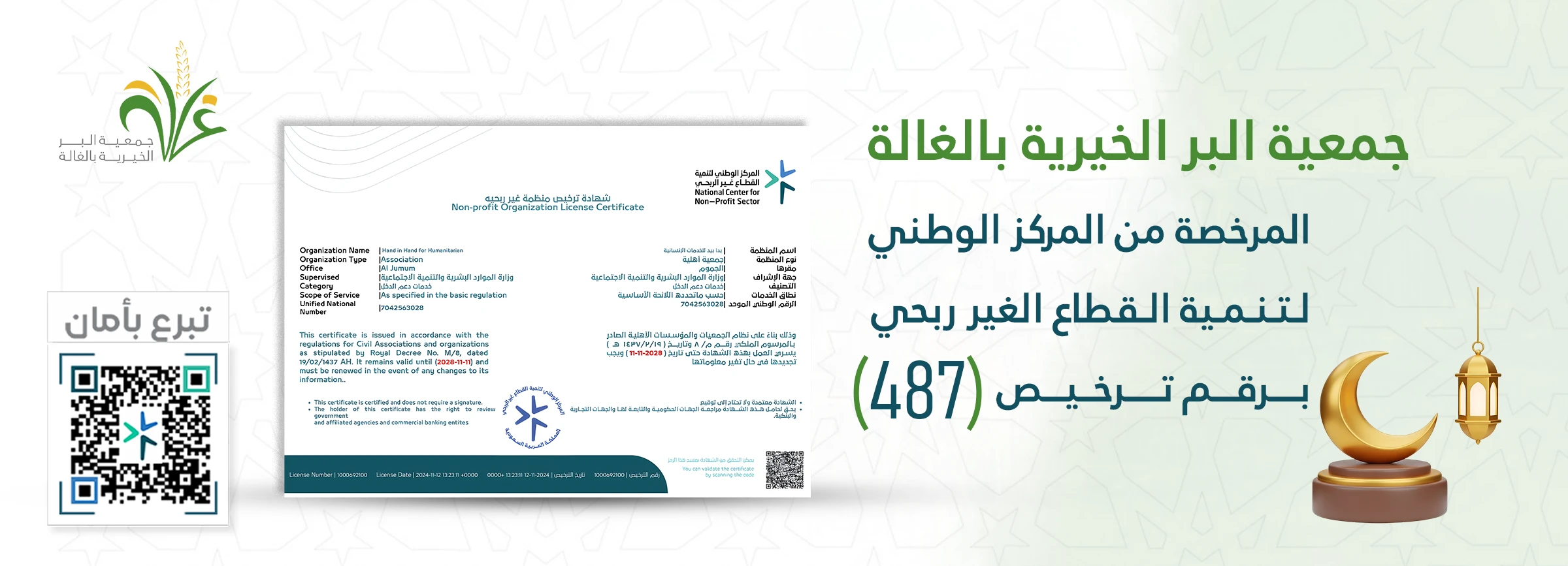 اغتنم أجور الإحسان، وساهم بصدقة نكفل عنك بها أسرة محتاجة من الأرامل والأيتام والفقراء، لتفوز بدعواتهم، وتكسب أجور كفالتهم.